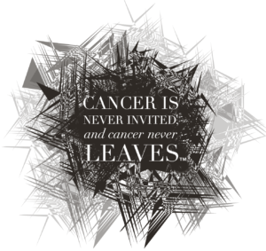 I have decided to refer to the lasting psychological and physical effects of my breast cancer experience as my “cancer scars.” A dear friend of mine, who happens to be a graphic artist, came up with the images for a saying I trademarked: “Cancer is never invited, and cancer never leaves.”