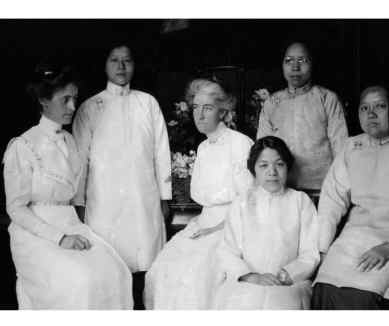 image Tien Fuh Wu (standing in the back, on the left) and Donaldina Cameron (seated, center) with a group of women who may have been Mission Home staffers. Courtesy of Louis B. Stellman, California State Library