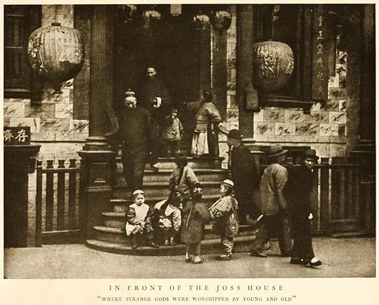 Image “Where strange gods worshiped- Photo of front steps of a joss temple in San Francisco, photo by Arthur Genthe, from his Old Chinatown collection (1912)