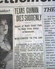 But on November 4, 1933, while backstage after a show in Vancouver, she fell ill with ulcerative colitis and died the next day while undergoing surgery – exactly one month before Prohibition ended. Twelve thousand people attended her funeral in New York.