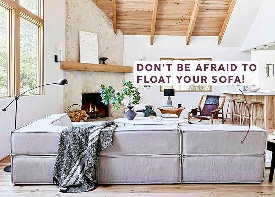 left: photo by kaitlin green, from: farmhouse living room reveal | right: photo by sara ligorria-tramp, from: mountain house family room revealIf you already have a floated sofa, our favorite two tricks to add a little visual “behind” interest are a sofa table (see post here for more info/rules) or a patterned blanket draped over the back. I’m sure you’ve seen Emily do this a ton of times.