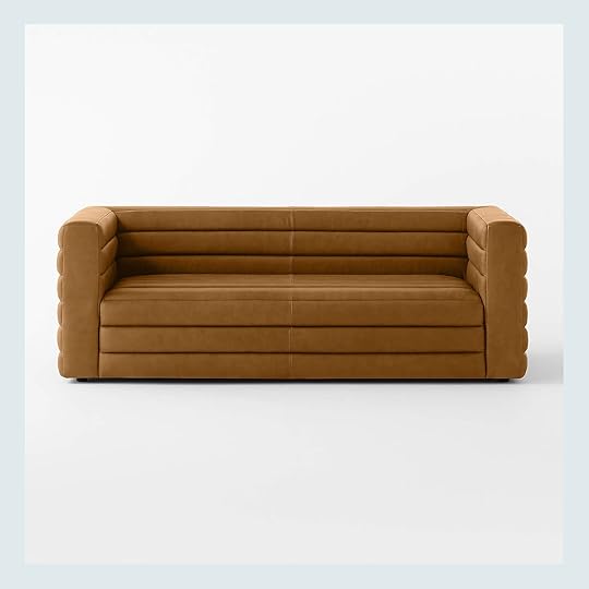 There’s nothing about this one I don’t love. I’d say most channeled sofas aren’t channeled on all sides like this one is. It could go in a modern space, a traditional space to freshen it up, or a totally eclectic room. It’s extremely versatile with the style and tone of leather plus looks great at every angle. It also comes in a beautiful velvet which is more affordable.