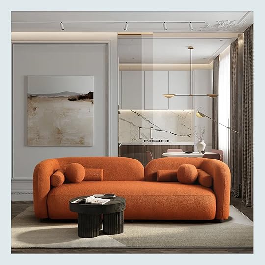 If you have a fun, eclectic modern style then this sofa could be perfect for you. The asymmetrical split back is really cool and not something you see a lot of. The reviews are great and it also comes in a white boucle if the rust orange is a little too bold:)