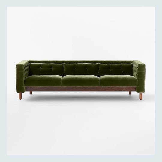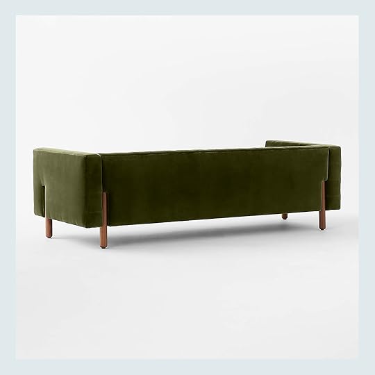Speaking of pretty green sofas, this CB2 sofa is pretty gorgeous. I LOVE how the legs are placed into the sofa’s sides and back but are still visible. I also love how the legs are pretty tall so it adds to the drama. Big fan.