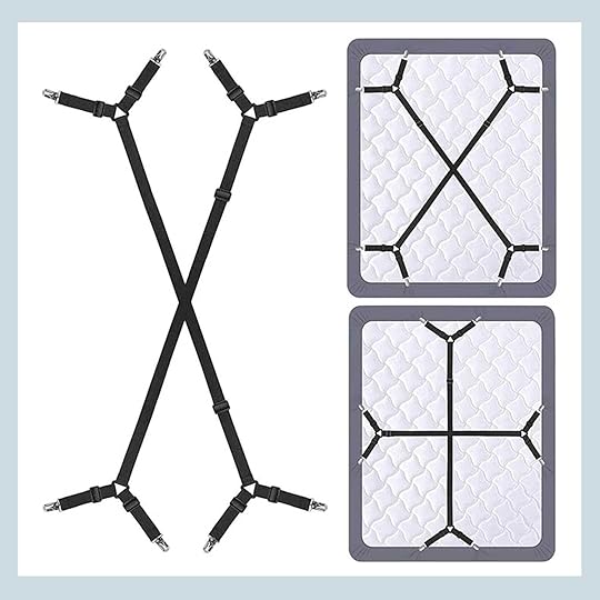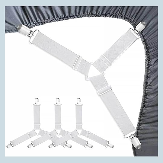 From left: Adjustable Bedsheet Holders | Padded Comforter Clips | Bed Sheet Holder Straps