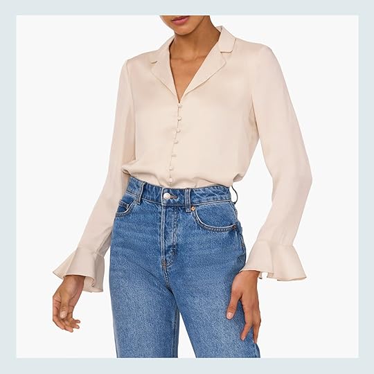 Now let’s go under the jacket with these two button-ups! This boxy Madewell one is a great spring/summer/early fall top. Throw it on with shorts or style it like in the photo with jeans and a boot. It also comes in a darker blue! Then I fell hard for this satin, bell cuff number. I just think it’s fun yet elegant and looks great with a pair of jeans. I have one from my mom that’s similar so I can vouch for the style:)