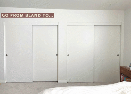 Can you believe it?!? I’m not talking about kitchens! But I *am* talking about how to make something so-so in your home better without ripping things out and starting over (particularly helpful for renters like me who have no other options). I write this currently sitting on my bed, looking to my right onto the world’s most boring, mundane wall full of sliding closet doors. I mean, it’s the entire right wall of my bedroom. I can’t place furniture on it, I can’t hang art, I’m stuck in an all-white cheapo hollow sliding door design purgatory here.