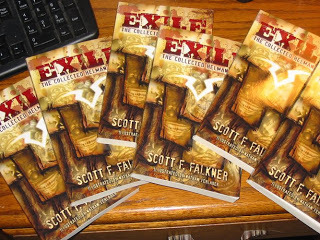 The latest addition to my little career has finally shown up in the flesh, or should I say in the pulp... as in paper... all right. Bad attempt at humor. But several copies of "Exile: The Collected Helman Graff" did show up in my mailbox yesterday...