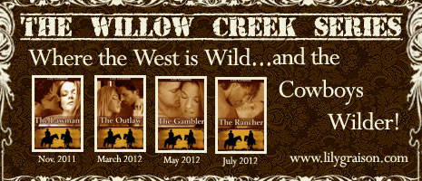The book is the first full-length novel in the Willow Creek Series, ending up around the 77,000 word mark, and it won't be the last. I have plans for a few more and as with everything, I'm sure more characters will keep popping up. So far, here is what's in store for our favorite little frontier town: