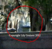 For me? I’m not sure if I believe in ‘ghosts’ but I do think there are things in this world that can’t be explained and what I see on these photographs is one of those very things. I can’t explain them. The shapes don’t look solid enough for me to think they’re real people. Besides the fact no one else was in this side of the cemetery when we were also factors in. Not to mention, there was a funeral taking place on the other side of the pond. Are the figures in these photos long-lost family members waiting for their loved one?