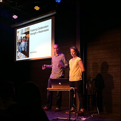Baking collaboration: Sandra and Mathieu Holl at the 43rd gathering of the Chicago chapter of CreativeMornings