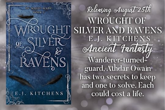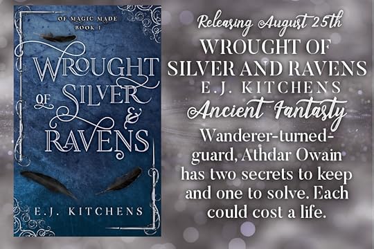 (Image: the cover for author E.J. Kitchens’ book, Wrought of Silver and Ravens, next to a t...