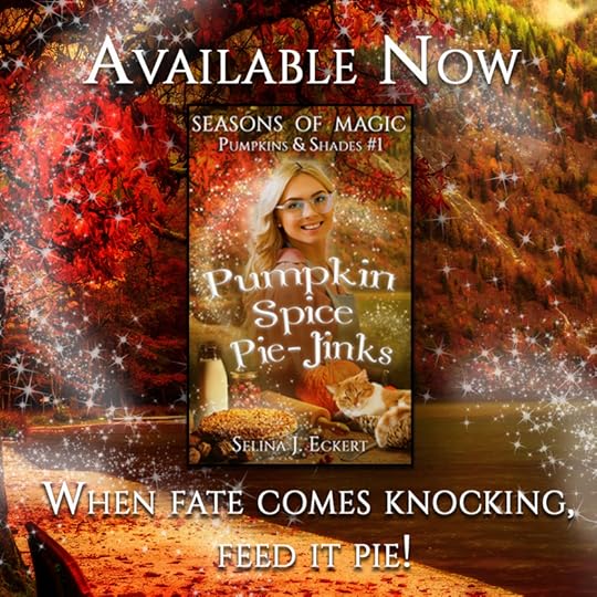 (Image: cover for Pumpkin Spice Pie-Jinks on a background of red leaves with the tagline “When fate...