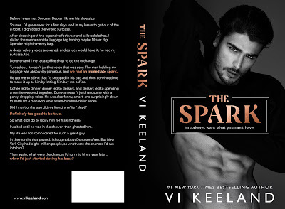 Title: The SparkAuthor: Vi KeelandGenre: Standalone Contemporary RomanceCover Design: Sommer Stein, Perfect Pear CreativePhoto: Jakub KozielModel: Alessandro DellisolaRelease Date: July 12, 2021BLURB