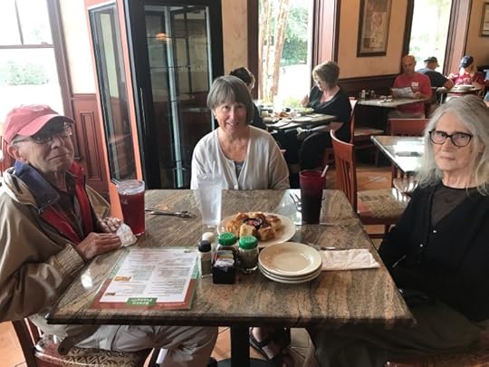 Book Signing at the Castle Book Shop, Castlebar, County MayoSo much has happened in the last year. We moved my mom, who has dementia, here to Florida so that she can be near me. Bill’s ability to see and comprehend diminishes each day. But I’m still grateful, we’ve managed to avoid coming down with the virus. We still have each other. This is a picture of the three of us having lunch a few weeks ago.