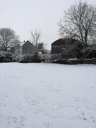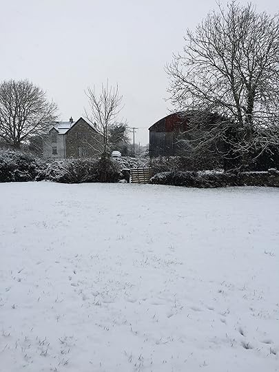 Sneachta is forecast in parts of Ireland today. No, I’m not talking about snacking or being snarky. Sneachta is the Irish word for snow. Snow rarely happens in Ireland’s fairly moderate climate. So, when it does snow, sneachta gets thrown around a lot. Because why not? If you live in a country where it rarely happens, you’ve got to make the most of the word when you can. Here’s a picture from a few years ago. We were in County Mayo in French Hill cottage. We woke up to sneachta!