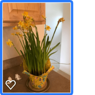 My kind neighbor arrived at my home a few days ago with a daffodil plant. All in an effort to make me smile. Here’s a picture of the cheery and elegant gift.