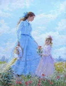 There I was clad from neck to wrist to ankle in a pale pink prairie dress. My long strawberry blonde hair was swept up into one of those old-fashioned pompadour do’s that were popular a couple hundred years ago.