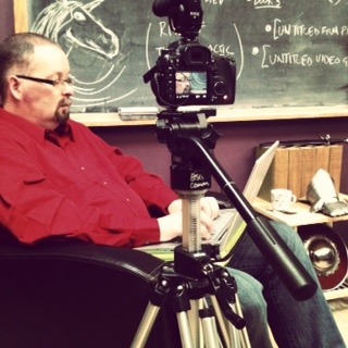 This picture was taken during the filming of the Mongoliad trailer. There was an entire section of the script that revolved around Joe Brassey and I in the office, typing and thinking. Eventually, we’d go upstairs and hit each other with swords. The hitting each other with swords bit is the only part that stayed in the final cut. Because, well, apparently Joe and I are even more awkward on camera than Neal.