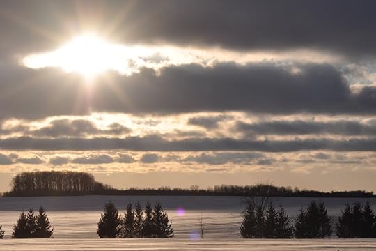 So go ahead, let our life be all up in the air. I can hear the wind out in the trees. The night sky’s stretching far above those spruce trees, like a shadowed battlefield.