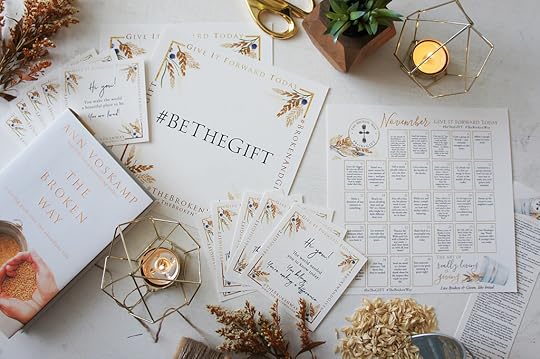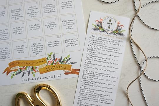 4. Be the GIFT throughout the holidays. Pick up a copy of The Broken Way and print out the daily GIFT list — and not only count gifts but this holiday season, feel the joy of being the GIFT — being broken and given like bread and giving it forward today.