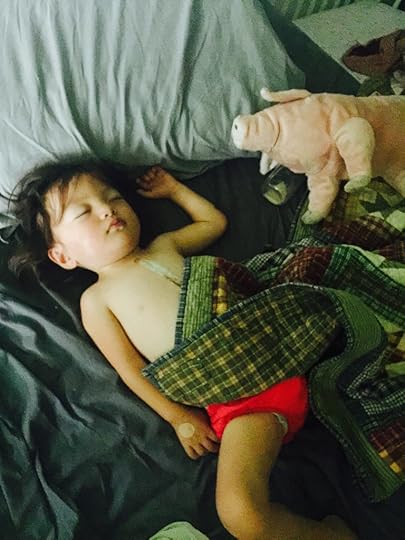 The kid has no idea that half a year later, a little girl from China will share his last name and be his own little sister lying on a hospital bed with her chest wired shut over her broken heart and I’ll be holding an insulin needle up over her thigh.
