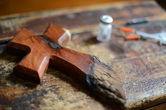 She found an ornate gold one and thought it was obvious that she could carry a cross like that and embody beauty. She needed that cross instead. But she found that the gold was heavy and her shoulders were hurting and that crosses that look better may not feel or be any better at all.