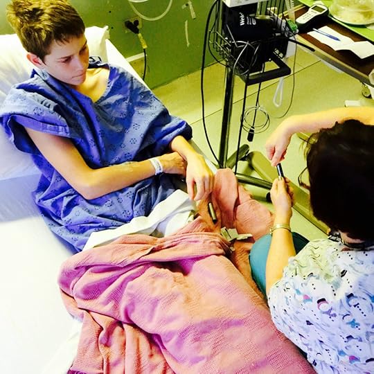 There are bruises up her leg from injections, and there’s still light, trusting light, in her eyes, and there is bravery to be found in even the weakest places and I try to find mine.