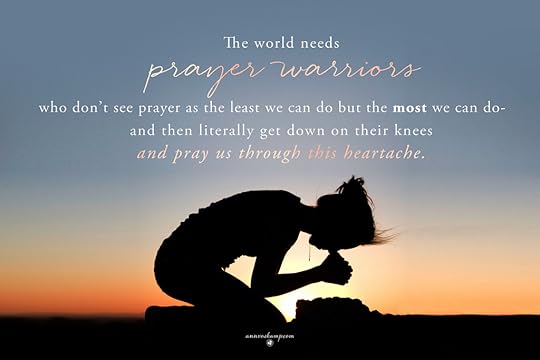Because the world weeps, needing prayer warriors who don’t see prayer as the least we can do but the most we can do — and then literally get down on their knees & pray us all through this heart ache and into His healing light.