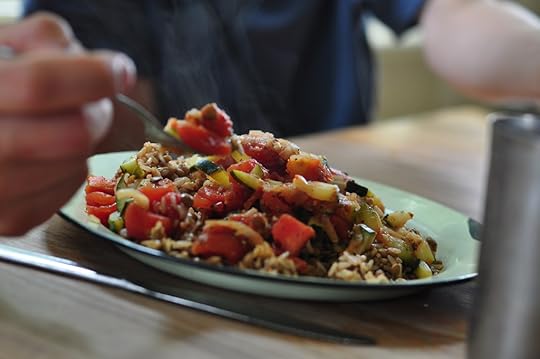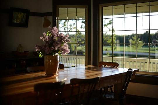 There are lilacs on the table, a bouquet spraying over the vase, over the edge. A twisted old limb that somehow bore grace, somehow blossomed.