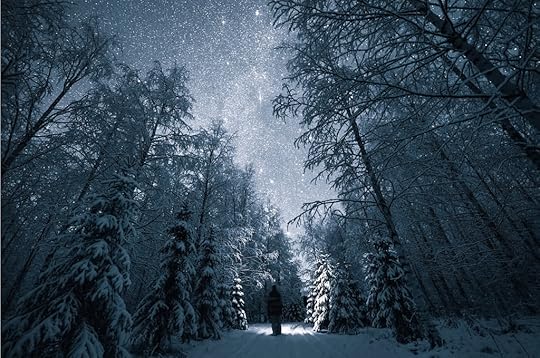 So go ahead, let our life be all up in the air. I can hear the wind out in the trees. The night sky’s stretching far above those spruce trees, like a shadowed battlefield.