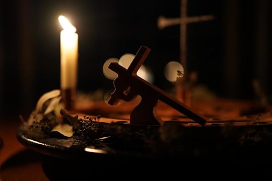 I spent the next few minutes on my knees, palms to the stone, my tears falling into the grooves, mixing with the dust.