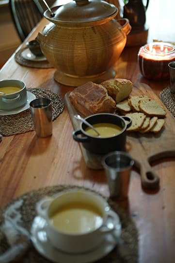 And around the table, as each woman is making her art, each woman shares the pain of a past life that has been part of making her present masterpiece. Without us wholly understanding, misery carries us into a holy mystery.