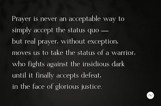 Prayer is never an acceptable way to simply accept the status quo — but real prayer, without exception, moves us to take the status of a warrior, who fights against the insidious dark until it finally accepts defeat, in the face of glorious justice.