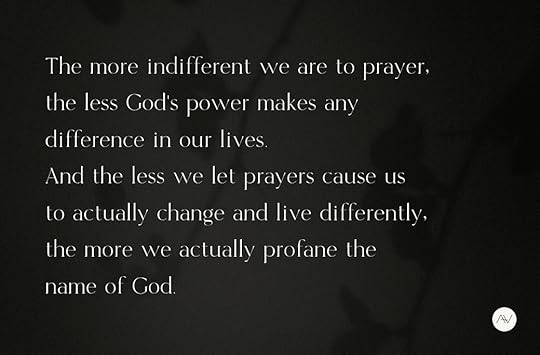 The more indifferent we are to prayer, the less God’s power makes any difference in our lives. And the less we let prayers cause us to actually change and live differently, the more we actually profane the name of God.