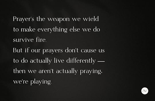 Prayer’s the weapon we wield to make everything else we do survive fire. But if our prayers don’t cause us to do actually live differently — then we aren’t actually praying, we’re playing.