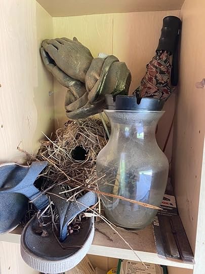 Late that afternoon, I scoop up the remaining half a dozen eggs the fowl ladies had punted out of their nest and let them roll out the pouch I’d made from the hem of my shirt into a tiny pile, like a cairn, an ebenezer, a landmark, a waymarker, there at the edge of the wheat field.