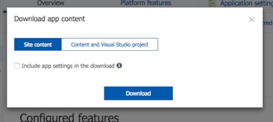 When downloading the app content, you have an option to also grab the app settings. I have a number of secrets stored in my settings ..things like keys to my databases , account ids and more. If you check that, the settings will get downloaded to a local settings file. If you were using this feature to continue your development locally, e.g. in VS2017, then you’ll want them. But for my scenario, they are not useful and even potentially a security issue (you’ll see shortly) so I’m going to leave that unchecked.