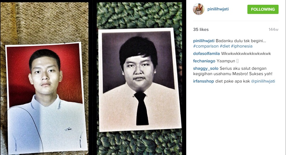 Jika melihat foto-foto yang terpajang di akun instagram @PINILIHWJATI pasti tidak akan percaya, jika polisi bertubuh tegap dan tinggi ini dulunya punya berat badan berlebih. Tapi bila kita kemudian melihat akun Facebooknya yang banyak berisi foto masa remaja polisi ganteng ini, baru kita akan percaya dan kagum dengan perubahan fisik yang dibuatnya.Pinilih Waluyo Jati, demikian nama yang ditulis di akun Facebooknya dan teman-temannya biasa memanggil Apin. Beberapa di antara temannya masih memanggil Apin dengan sebutan yang kurang enak didengar, yakni ‘ ndut’.