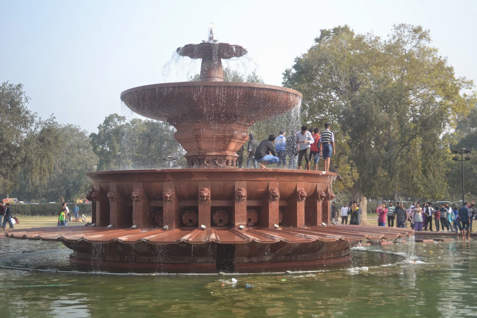 Di sekitarnya saya menemukan air mancur yang dipenuhi turis lokal berjoget-joget sambil basah-basahan. Saya tersenyum melihatnya. India banget, soalnya. Kabarnya, di malam hari air mancur itu terlihat spektakuler karena permainan cahaya dan air mancurnya sendiri bisa menari-nari. Di siang hari, saya tak begitu tertarik melihatnya, lantaran kolam di bawahnya terlihat kotor oleh sampah.