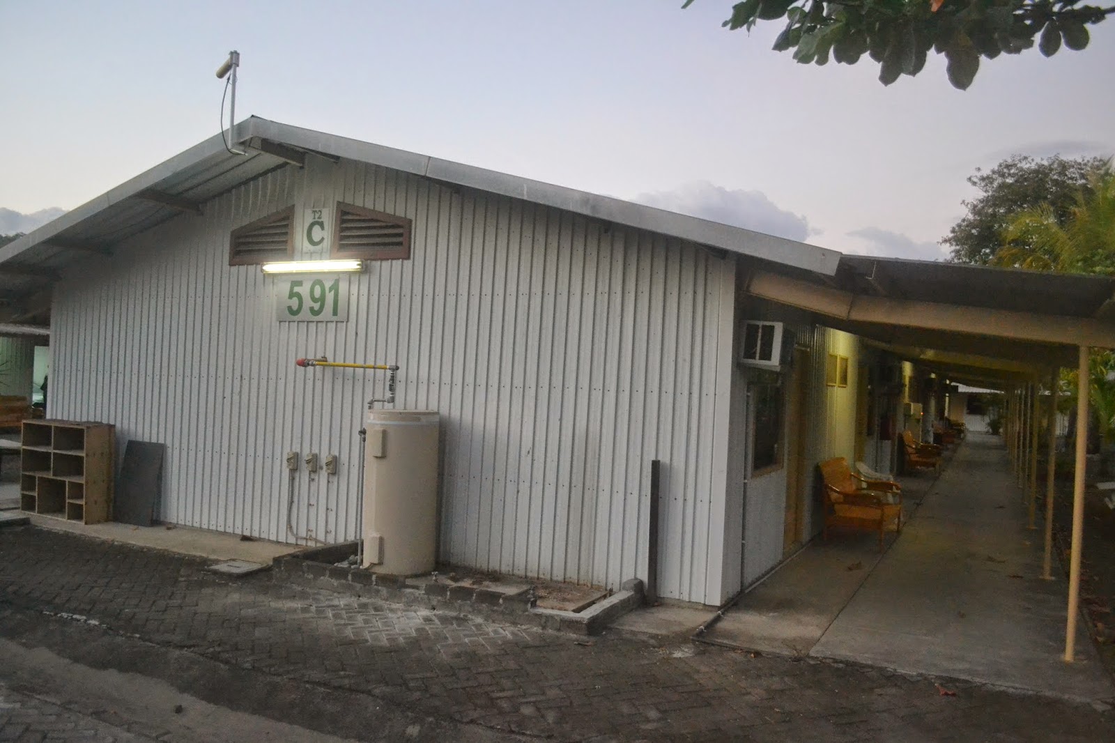 Terus terang, saya udah nggak kuat pengen mandi. Makanya senang banget ketika tahu akan segera ke tempat menginap. Townsite ini mengingatkan saya kepada barak-barak di film-film horor. Dan suasana malam terbilang horor di Newmont karena statusnya yang sedang vakum.