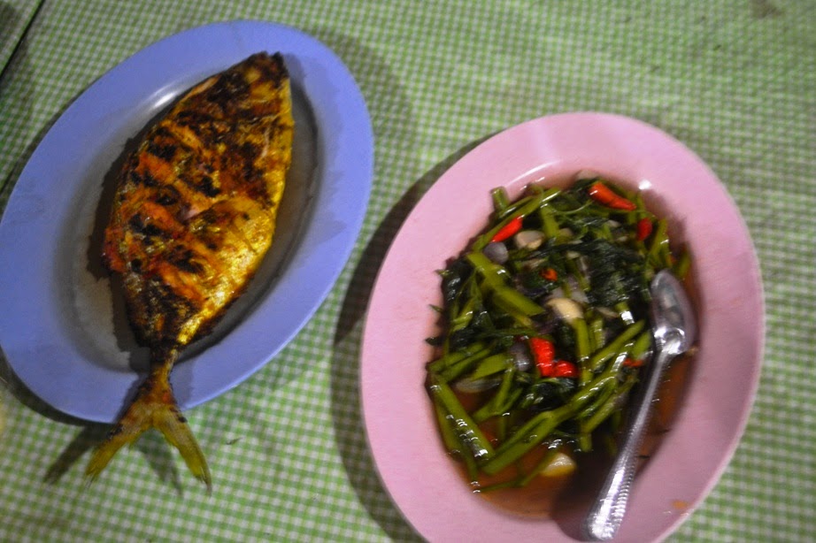Saya sih bingung apa yang harus dimakan. Sesungguhnya saya lagi banyak pantangan. Jadinya saya makannya yang aman-aman saja. Ikan dan ayam goreng. Tentu saja sayur kangkung yang lezat. Tanpa nasi karena saya sedang diet ketat.
