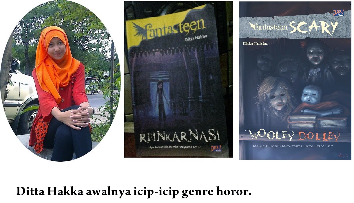 Penulis muda berusia 17 tahun ini masih berstatus siswi SMAN 1 Bojonegoro, Jawa timur . Alasan Ditta menulis cerita horor karena TREND. “genre horror sekarang lagi trend dan disukai pembaca. Selain itu, ada sensasi sendiri waktu nulis horror. Yang paling penting, harus bisa mengontrol rasa takut diri sendiri,” jelas penulis novel Wooley Dooley ini.