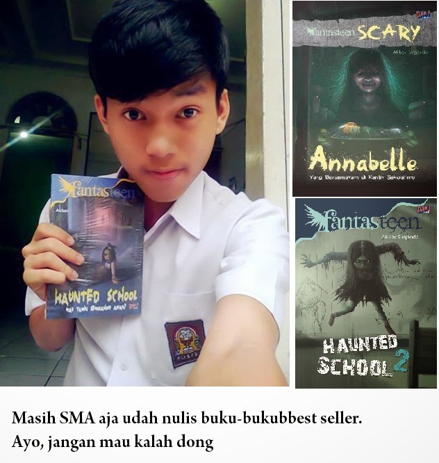 “Jadi penulis horor itu, walaupun suka takut sendiri, tapi iamjinasinya bisa mengalir terus,” kata cowok yang menggunakan uang royaltinya untuk menabung dan membeli barang yang disukainya.