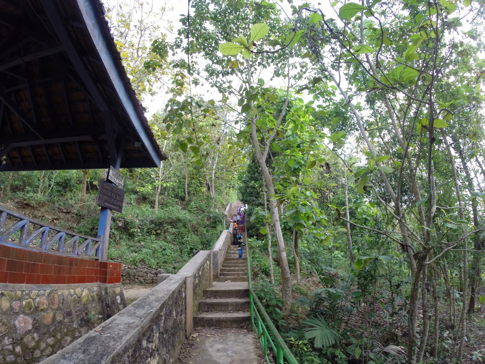 Untuk pengunjung yang tidak didampingi warga lokal, bisa minta didampingi pemandu yang bisa ditemui di tempat parkir. Tidak ada tarif khusus untuk pemandu. Biasanya pengunjung akan langsung diajak menapaki tangga yang jumlahnya puluhan undakan dengan kecuraman 50 derajat. Perlu tenaga ekstra dan kesabaran bagi yang sudah berumur atau jarang berolahraga. Tidak jarang pengunjung terlihat kepayahan di pertengahan jalan. Tapi itulah ciri khas tempat-tempat yang berkaitan dengan ritual reliji.