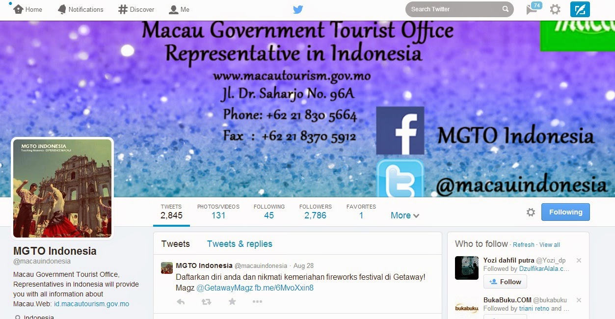 Kemilau di Langit MacauPernah membayangkan langit malam diterangi percikan kembang api yang megah disertai sorak-sorai dan tepuk tangan penonton? Biasanya sih kita menikmatinya di malam tahun baru. Tapi di Macau, Tiongkok, tak perlu menunggu tahun baru untuk melihat keindahan pertunjukkan kembang api.
