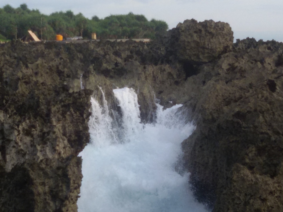 Saat saya berkunjung terjangan ombak ke karang tidak sedahsyat yang saya lihat di Internet. Tapi lumayan bikin adrenalin naik. Benar kata Made, sekuriti yang saya tanya. "Besarnya ombak nggak tentu. nanti saya bilang sore, taunya nggak besar. Saya bilang pagi, taunya malah sore besarnya," jelasnya.