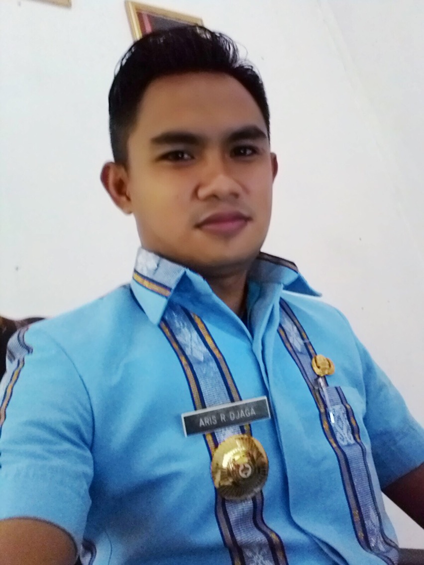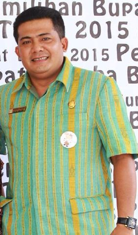 Aris Ratu Djaga, mantan lurah Maliti, Kabupaten Sumba Barat, NTTSemula saya tidak memerhatikan detilnya. Ternyata setelah diberi tahu saya baru mengerti ada motif di bagian garis kuning. Bentuknya sangat unik karena ada lubangnya. Nama motifnya adalah mamoli. Nama mamoli diambil dari perhiasan anting-anting yang kemudian dijadikan bentuk motif kain tenun.