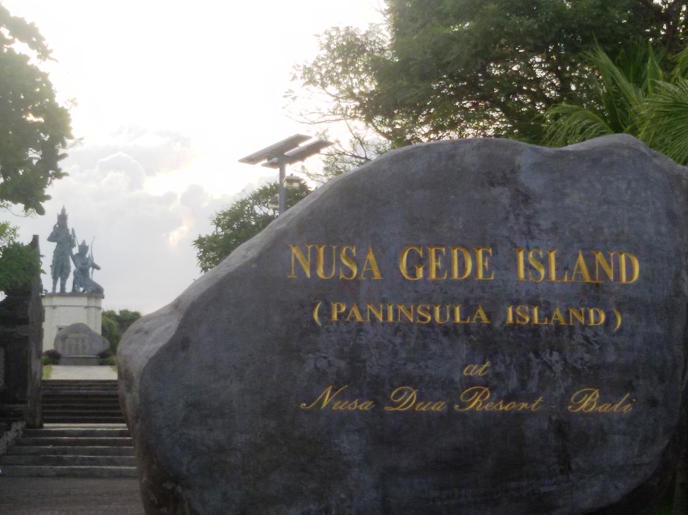 Nama kawasan Nusa Dua kabarnya diambil karena terdapat dua pulau di dekatnya. Satu pulau yang lebih besar bernama Nusa Gede atau kadang juga disebut Pulau Peninsula yang saya sudah kunjungi sebelumnya. Satu lagi adalah pulau yang sedang saya tapaki saat ini bernama Nusa Dharma.