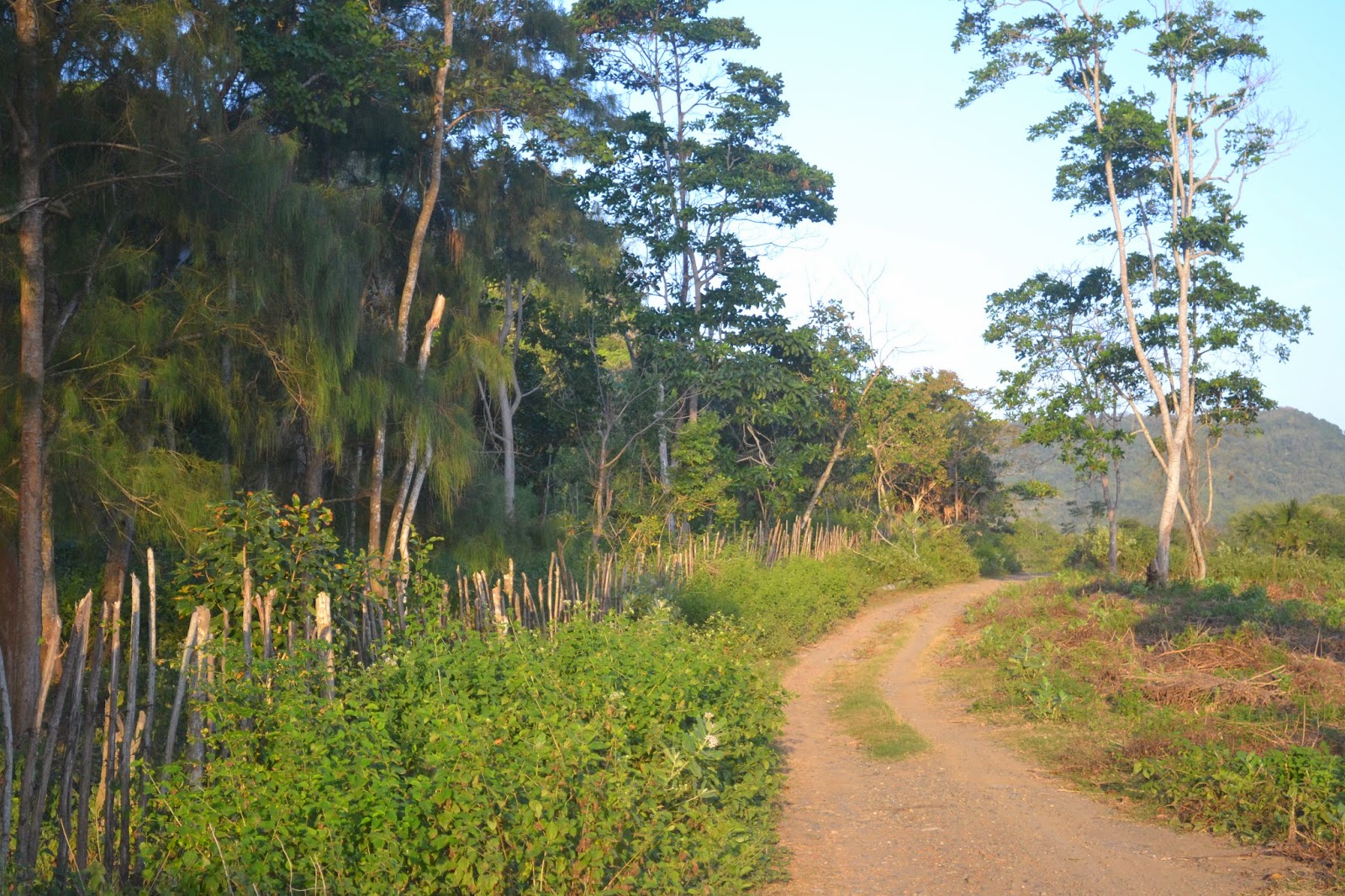 Jalan kecil menuju Pantai Lawar.Hilang sudah penat setelah bekerja membuat liputan di kawasan pertambangan dan sekitarnya yang menguras tenaga sejak pagi. Saya langsung melepas sepatu, dan jalan-jalan menapaki pasir pantai yang basah dan lembut.Pantai Lawar benar-benar tersembunyi dalam arti sebenarnya. Untuk mencapat tempat ini harus melewati jalan tanah berkerikil yang hanya bisa dilalui satu mobil. Dari Jalan Raya Sekongkong, kami harus belok masuk ke area perkebunan percobaan. Nyaris tak ada bangunan yang kami jumpai hingga 300 meter ke dalam berjumpa bibir pantai Sekongkang.
